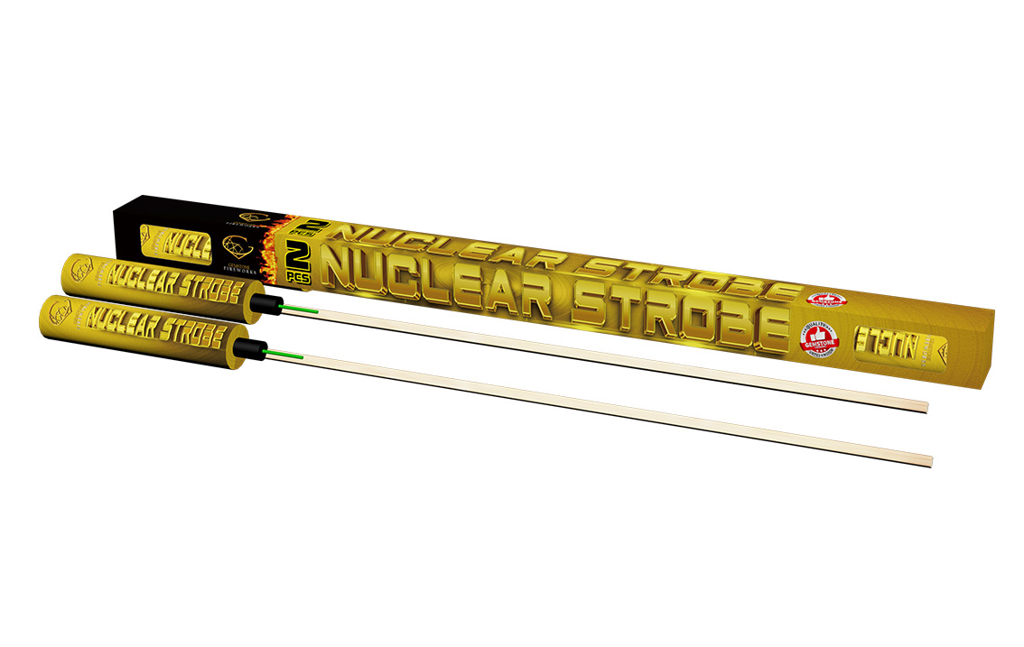 Introducing “Nuclear Strobe,” a dynamic duo of rockets that promise to illuminate the night sky with unparalleled brilliance. This explosive pack contains two rockets, each packed with the power to dazzle and amaze.